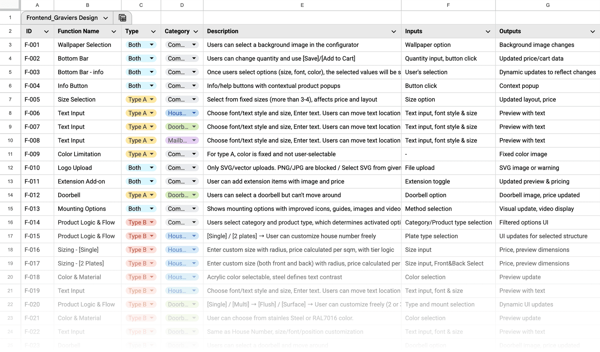 Based on insights from usability testing, I developed the functional specification for Graviers’ 2D Configurator to make the customization and purchase flow more intuitive.