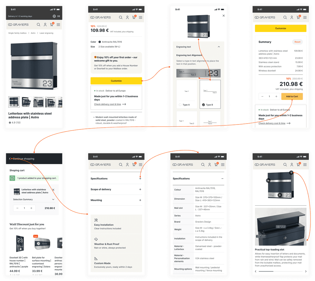 Design the experience from customization to browsing and checkout as one seamless flow, allowing users to progress naturally without drop-offs.