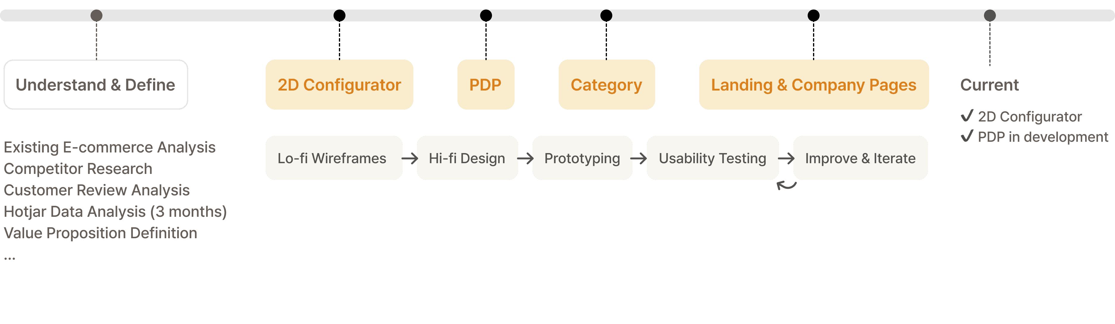 Designing the 2D configurator taught me that guiding users through the right flow matters more than offering endless choices. “Less is more” builds clarity and trust.